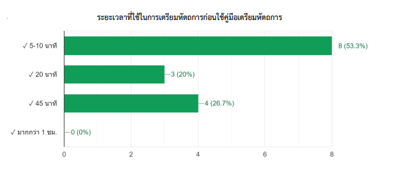 2.ระยะเวลาในการจัดเตรียมอุปกรณ์น้อยกว่า 10 นาทีมากกว่า 80%