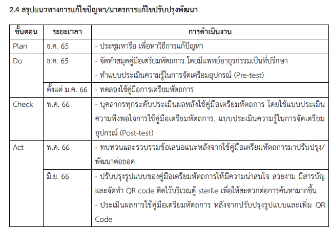 1. บุคลากรทุกระดับมีความรู้ในการจัดเตรียมหัตถการเพิ่มขึ้น สามารถเตรียมอุปกรณ์ได้ครบถ้วน