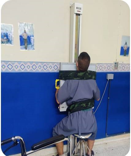 - ช้สายช่วยประคองตัวผู้ป่วยที่อยู่ไม่นิ่ง ไม่ให้ขยับตัวขณะถ่ายภาพเอกซเรย์