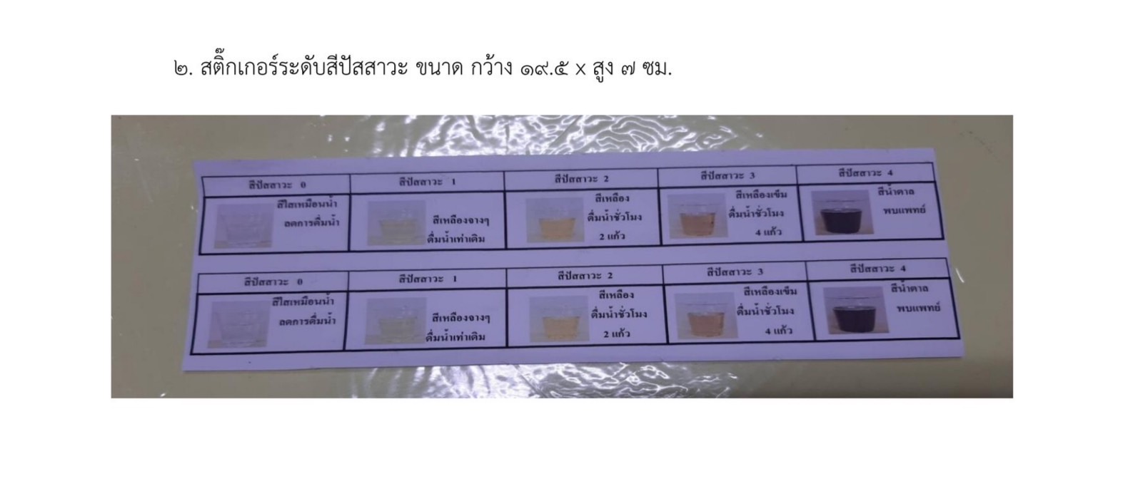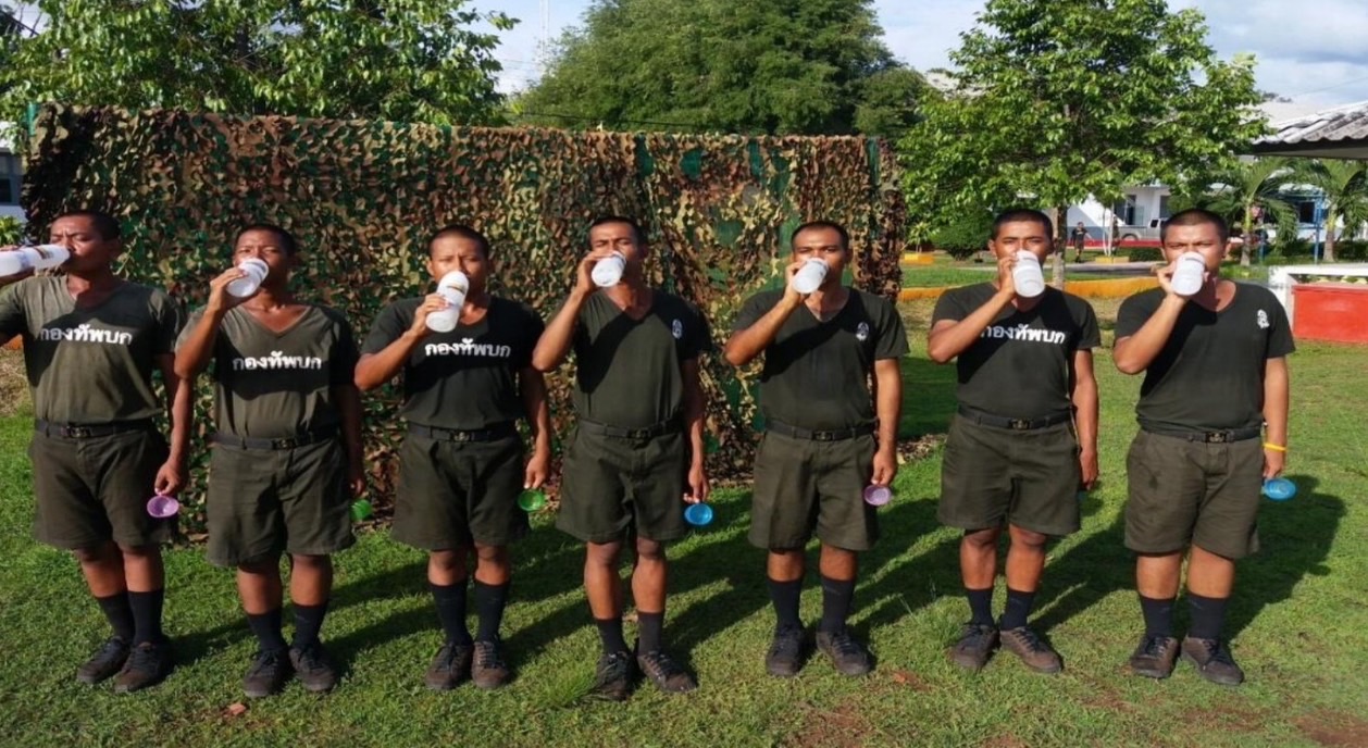 นวัตกรรมยกดื่ม ปลอดภัย ไร้ลมร้อน เพื่อให้ทหารใหม่ได้รู้จักการสังเกตสีปัสสาวะทั้งก่อน หลัง การฝึก และก่อนนอน เพื่อให้ดื่มน้ำได้เพียงพอต่อความต้องการของร่างกาย