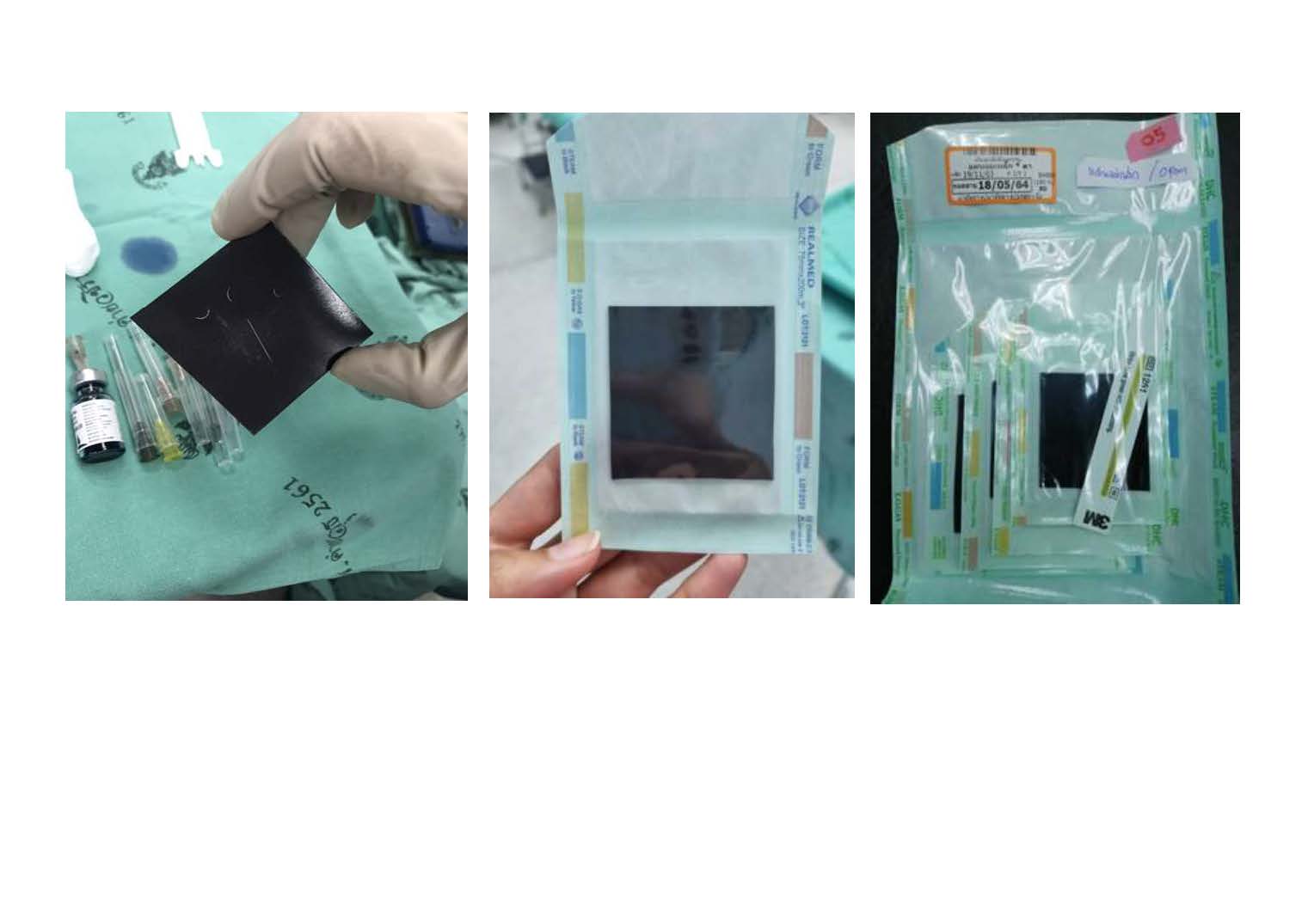 เป็นแผ่นแม่เหล็ก ขนาด 5×5 ซม. นำไปส่งอบแก๊สเพื่อทำให้ปราศจากเชื้อ นำมาเปิดใช้ใน fieldผ่าตัดทุกราย
