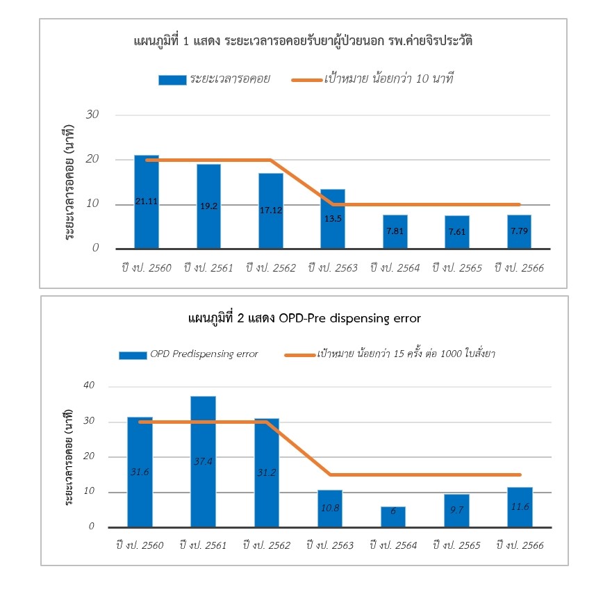 1. ระยะเวลารอคอยรับยาผู้ป่วยนอก เป้าหมาย น้อยกว่า 10 นาที