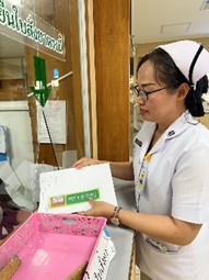 ผู้รับบริการนำใบสั่งยาที่แนบ OPD Navigator card เพื่อเครื่องมือช่วยเตือนให้ผู้รับบริการไปยื่นห้องชำระเงินเพื่อปิดสิทธิการรักษา ก่อนยื่นรับยาที่ห้องยา เพื่อความสะดวก รวดเร็วในการรับบริการ