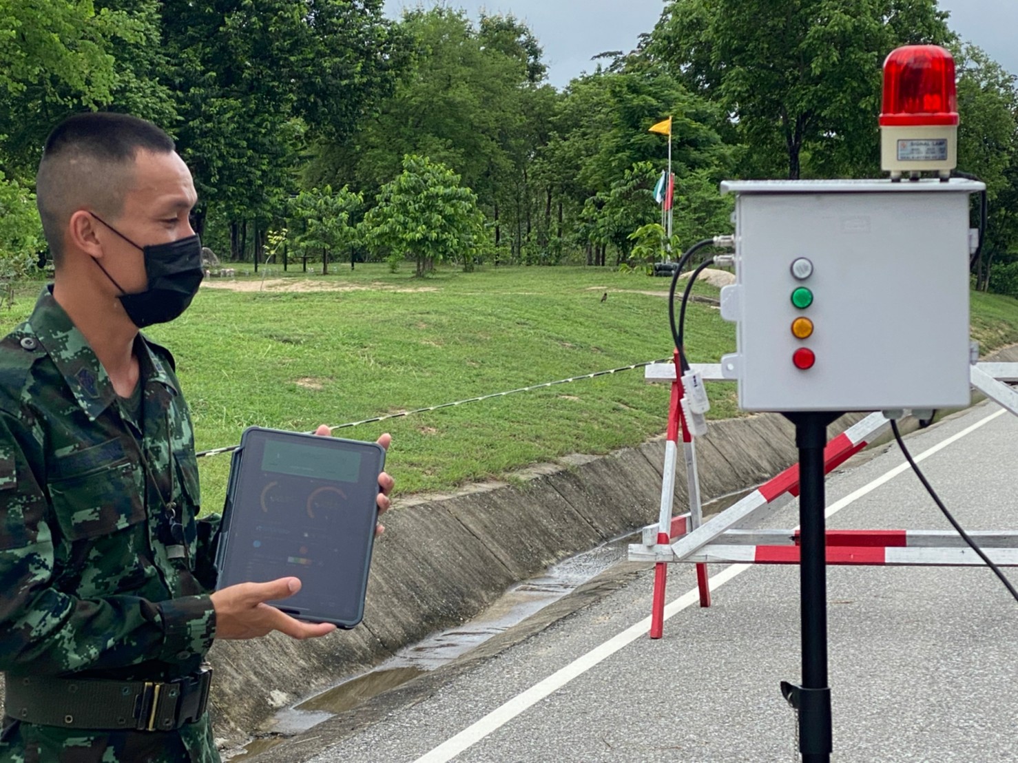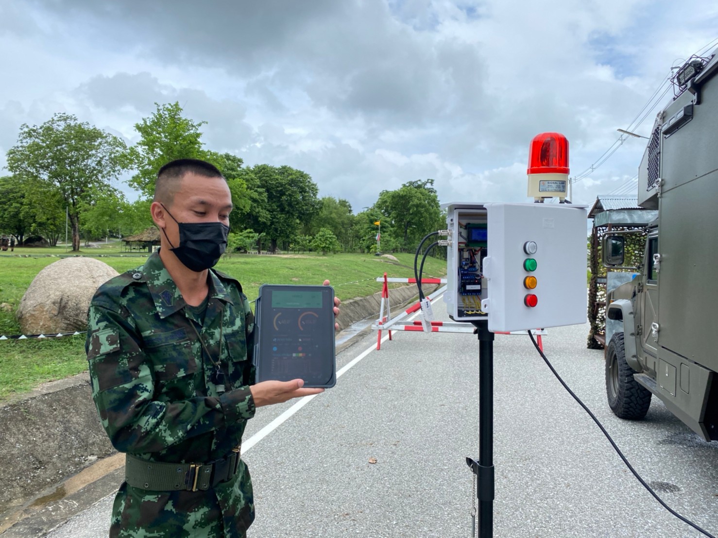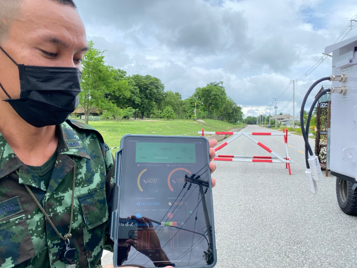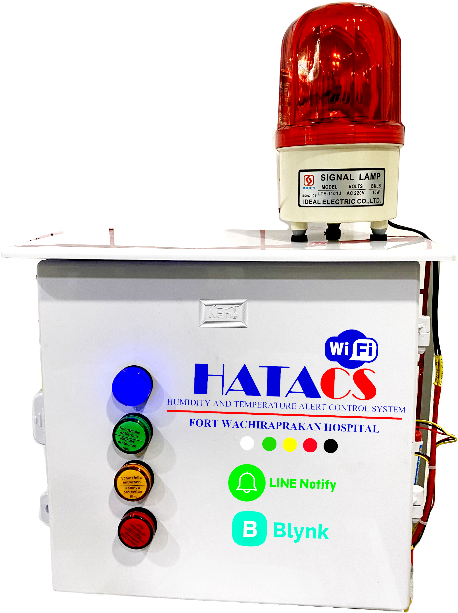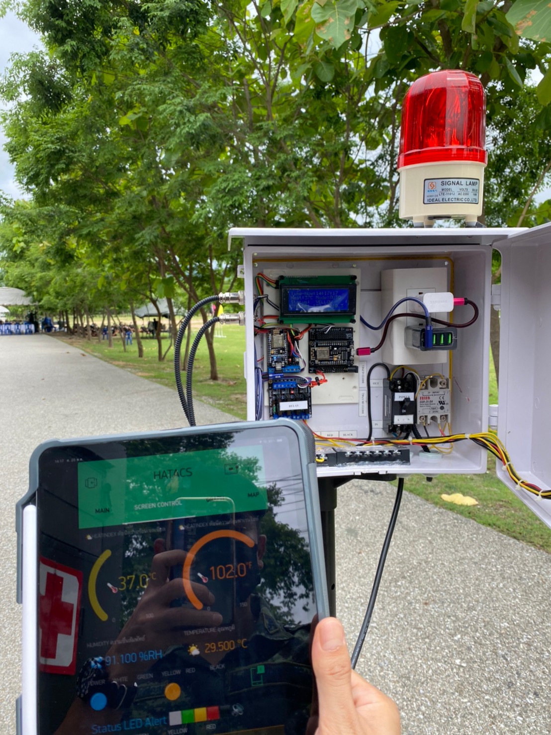 ระบบการแจ้งเตือนค่าดัชนีความร้อน( Heat Index) HATACS ( Humidity And Temperature Alert Control System ) เป็นเครื่องมือช่วยเหลือเสนารักษ์ หรือเจ้าหน้าที่รับผิดชอบการส่งสัญญลักษณ์การขึ้นธงสี เพื่อกำหนดระยะเวลาการฝึกหรือการพัก โดยระบบจะแสดงข้อมูลประกอบด้วย เวลา ( Time ), ค่า ดัชนีความร้อน (°C,°F ), สถานะธงสี ( Status ), สถานะการเชื่อมต่อ Server ( IP Connection ) ผ่านจอ LCD ส่วนหน้าตู้ควบคุม แสดงหลอดไฟสี ประกอบไปด้วย ๕ สี คือ ธงขาว ธงเขียว ธงเหลือง ธงแดง ส่วนธงดำ แสดงเป็นไฟไซเรน มีระบบการแจ้งเตือนผ่านทาง Line Notify เริ่มแจ้งเตือนตั้งแต่เวลา ๐๗๐๐ - ๑๗๐๐ ทุกๆ ๑ ชั่วโมง แสดงข้อมูลแบบเรียลไทม์ ( Realtime ) ผ่านทางแอพพลิเคชันบลิงค์ (Application BLYNK ) เพื่อช่วยลดและป้องกันการบาดเจ็บหรือเสียชีวิต จากความร้อน ในระหว่างการฝึก