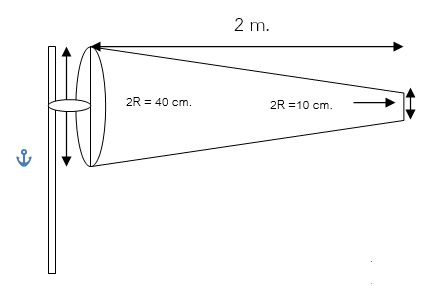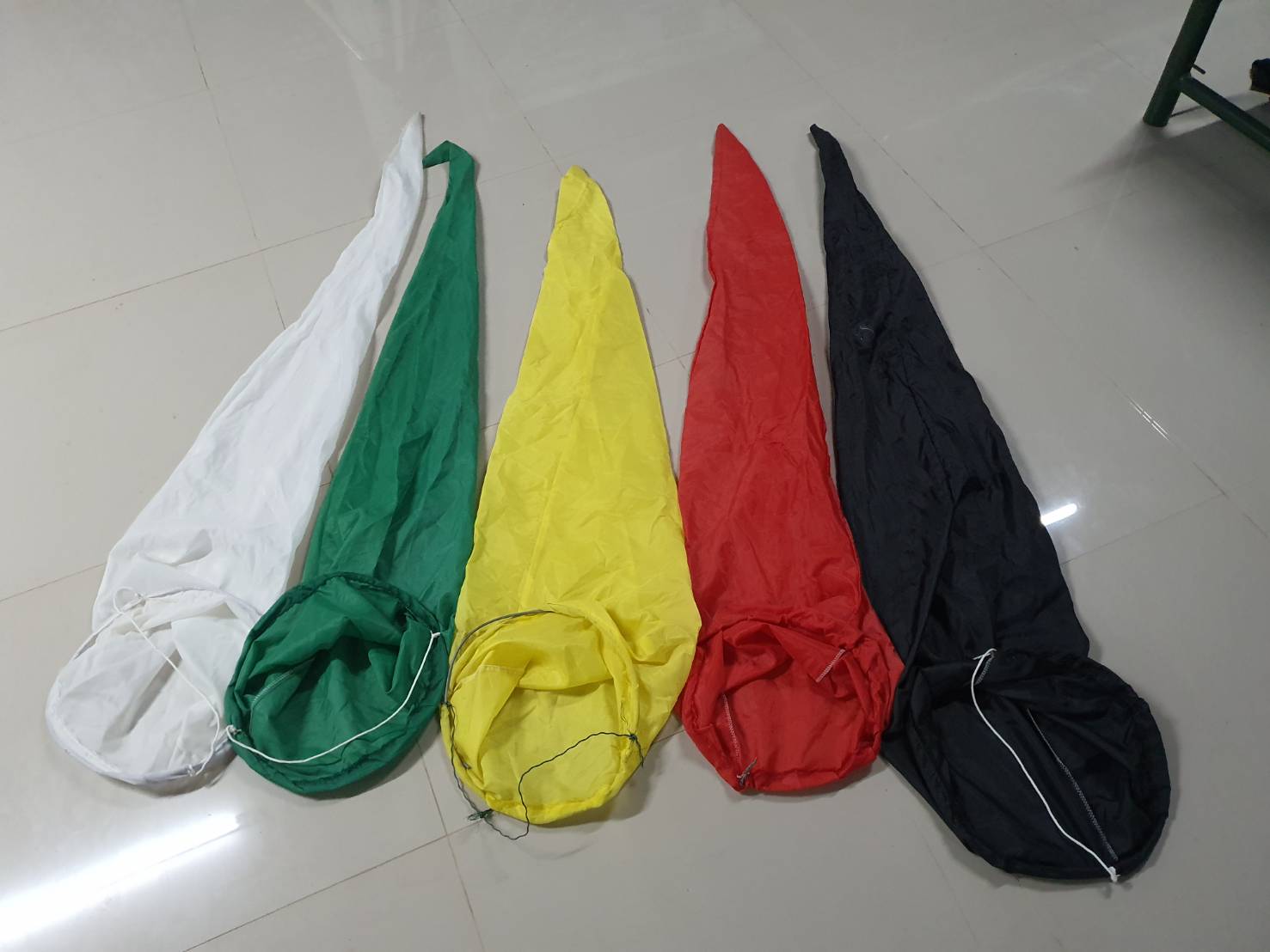 ใช้ผ้าสี 5 สี ตามขนาดที่กำหนด และตัดเย็บให้ได้รูปทรงกรวยที่มีปลายเปิดให้ลมสามารถผ่านไปได้ โดยเย็บด้านกว้าง 1.25 ม. ให้สามารถสอดลวดแข็ง เพื่อทำเป็นรูปกรวยได้ ดังรูป