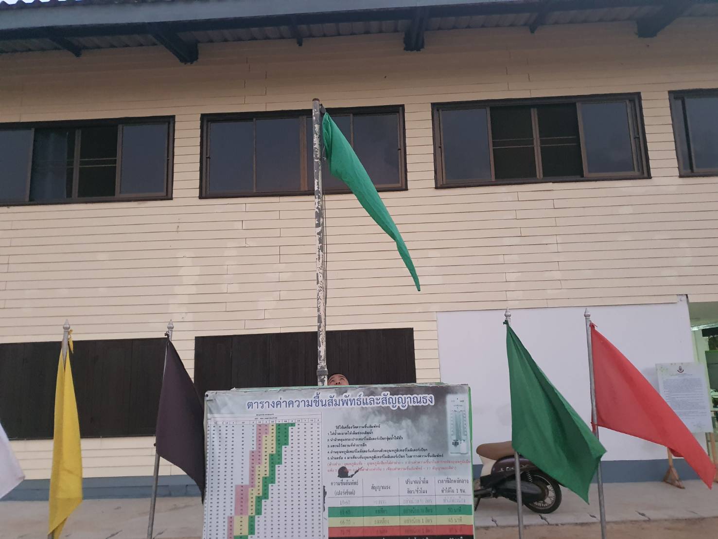 - สีของธงแสดงสภาพอากาศ ได้แก่ อุณหภูมิ ความชื้นสัมพัทธ์ และแนวทางการปฏิบัติ ได้แก่ ปริมาณน้ำที่ควรได้รับ และระยะการฝึกและการพัก เช่นเดียวกับการใช้สีของธง ตามแนวทางการป้องกันการบาดเจ็บการความร้อน ที่ พบ. กำหนด
