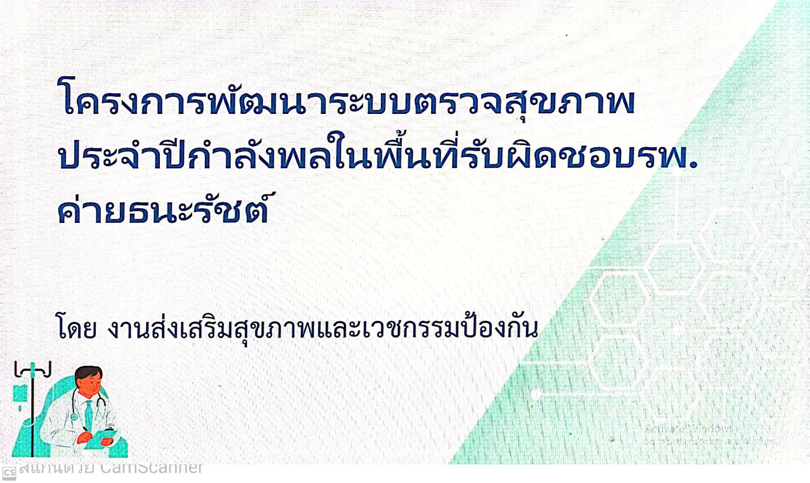 การพัฒนาระบบตรวจสุขภาพประจำปีกำลังพล ในพื้นที่รับผิดชอบรพ.ค่ายธนะรัชต์