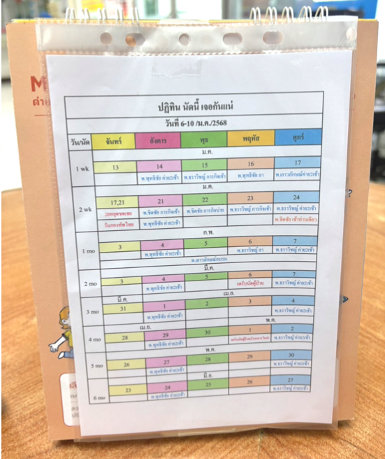 ห้องตรวจโรคผู้ป่วยนอก จึงมีแนวคิดในการพัฒนาและปรับปรุงกระบวนการนัดหมาย โดยใช้นวัตกรรม “ปฏิทิน นัดนี้ เจอกันแน่” เพื่อใช้เป็นแนวทางในการนัดหมายผู้ป่วยนอกให้เป็นไปอย่างมีประสิทธิภาพ ถูกต้อง รวดเร็ว ลดระยะเวลารอคอยในการรอใบนัดหมาย ส่งผลให้ผู้รับบริการมีความพึงพอใจได้รับบริการที่สะดวก รวดเร็ว ถูกต้อง และยังเป็นการอํานวยความสะดวกให้แก่แผนกต่างๆที่มีการนัดหมายผู้ป่วยอีกด้วย