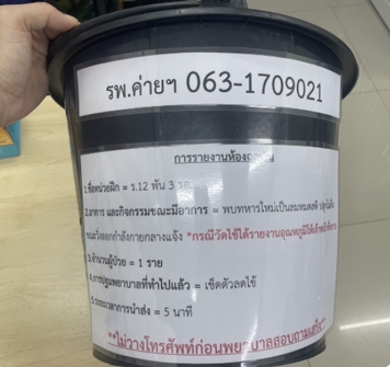 สาส์นข้างถังเป็นนวัตกรรมที่นำข้อความที่มีความจำเป็นต่อการส่งข้อมูลผู้ป่วยโรคลมร้อน ตามหลักการ ISBAR มาติดไว้ข้างถังใส่อุปกรณ์การปฐมพยาบาล โดยมีข้อความประโยค ดังนี้