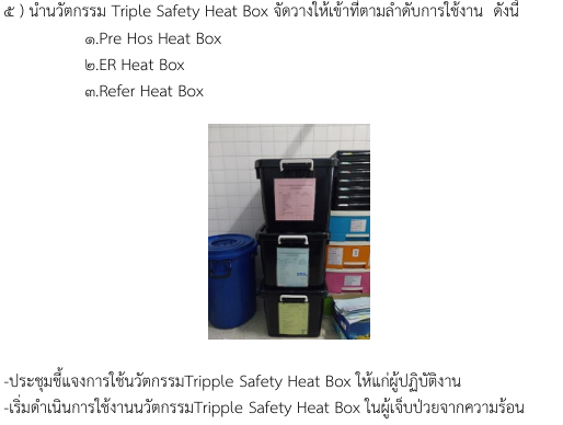 แผนกฉุกเฉิน โรงพยาบาลค่ายพ่อขุนผาเมืองจึงจัดทำนวัตกรรม Triple Safety Heat Box ขึ้น เพื่อ