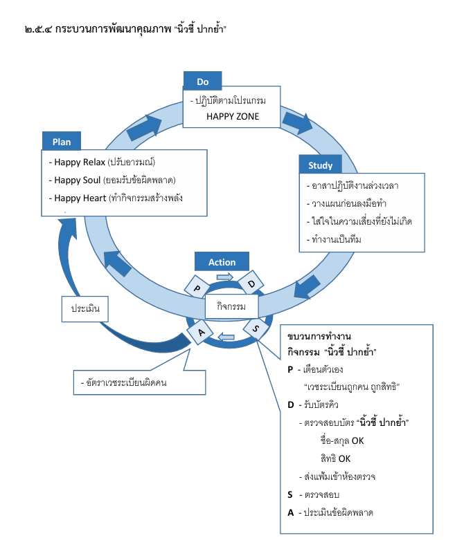 - จำนวนครั้งที่เข้าห้องปรับอารมณ์ลดลง เจ้าหน้าที่สามารถปรับอารมณ์ตัวเองได้