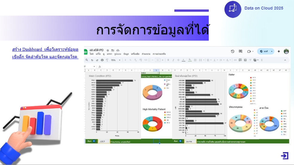 นักวิชาการคอมพิวเตอร์ ประจำโรงพยาบาลค่ายกฤษณ์สีวะรา เป็นวิทยากร เพื่อเป็นการเสริมสร้างความรู้ ทักษะการใช้งานคอมพิวเตอร์ และเสริมสร้างการทำงานร่วมกันระหว่างหน่วยงานด้วยเครื่องมือที่เข้าถึงง่ายและใช้งานได้ทุกที่ เพิ่มประสิทธิภาพและความรวดเร็วในการรวบรวม วิเคราะห์ และรายงานข้อมูล รองรับการติดตามผลแบบเรียลไทม์และการนำข้อมูลไปใช้ในการบริหารจัดการได้อย่างมีประสิทธิภาพ โดยบูรณาการ จากนวัตกรรม Data on cloud 2025 หอผู้ป่วยชายรวม รพ.ค่ายธนะรัชต์ ณ ห้องประชุมล้อมทอง รพ.ค่ายกฤษณ์สีวะรา