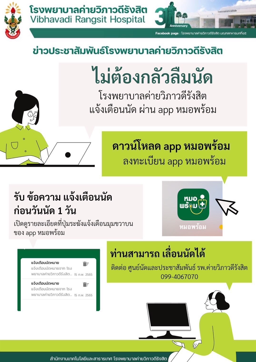 ระบบแจ้งเตือนนัดหมาย ผ่าน app หมอพร้อม