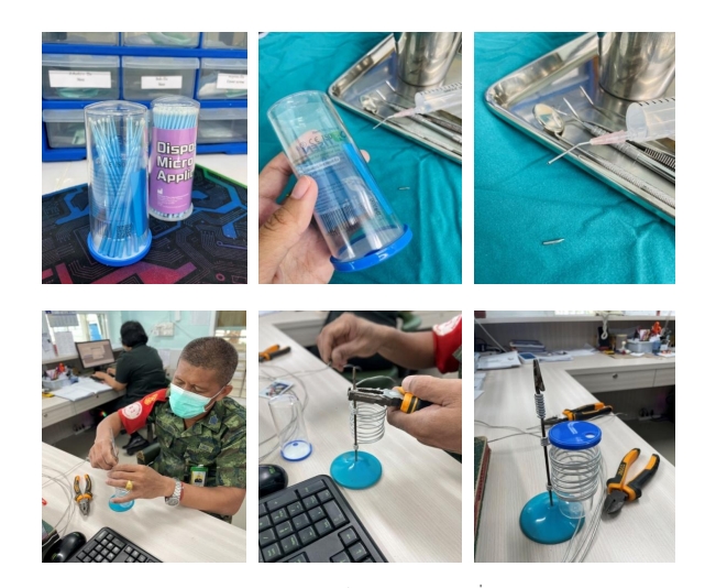ซึ่งเป็นกระบอกพลาสติกใสมีความหนาของพลาสติกที่ 2 มิลลิเมตร มาใช้เป็นที่จัดเก็บปลายหัวเข็ม
