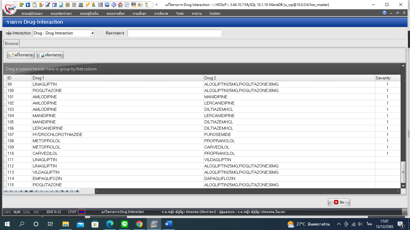 1.การอัพเดตรายการยาและตั้งค่ารายการยาที่มีข้อบ่งใช้เดียวกันเมื่อมีรายการยาใหม่ทุกครั้งแล้วบันทึกในระบบ HosXP ทำการแจ้งแพทย์ พยาบาลให้ทราบถึงรายการยาดังกล่าว
