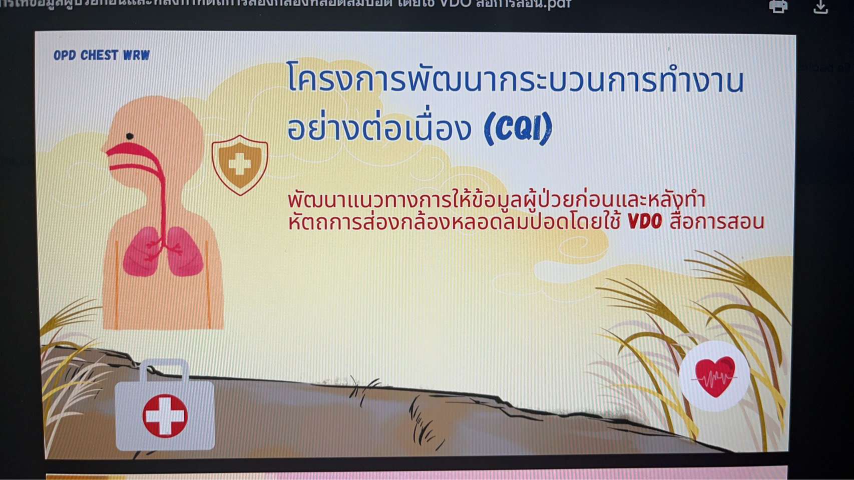 พัฒนาแนวทางการให้ข้อมูลก่อนและหลังทำหัตถการส่องกล้องหลอดลมปอดโดยใช้ VDO สื่อการสอน