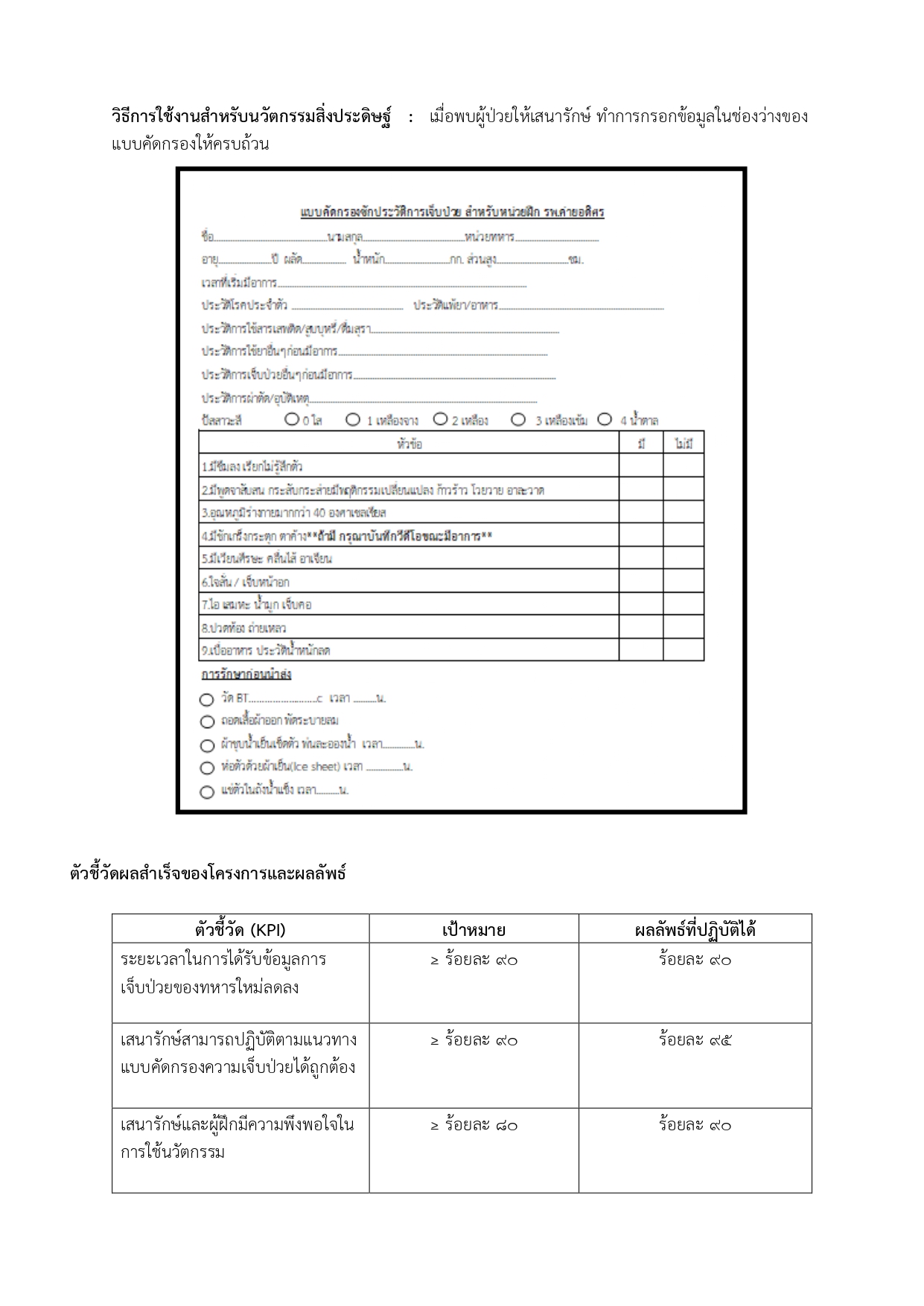 แบบคัดกรองซักปะวัติการเจ็บป่วย สำหรับหน่วยฝึกทหารใหม่