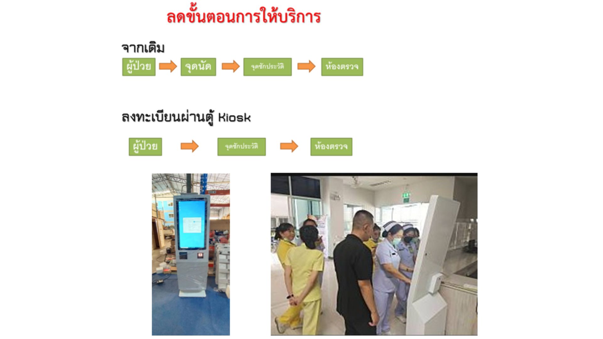 - เพิ่มจุดบริการที่ กอง/แผนก /ส่วนต่างๆ ของโรงพยาบาล