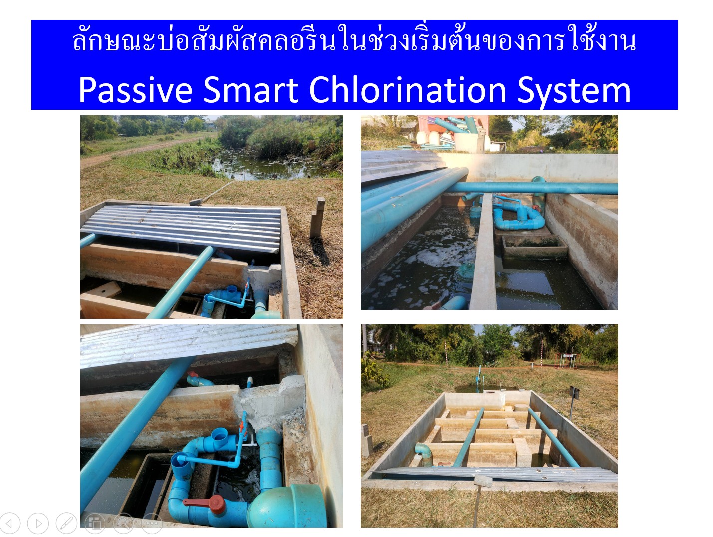 - ปรับเปลี่ยนช่องที่ 1 ของบ่อสัมผัสคลอรีนให้เป็น “ถังเก็บและจ่ายสารละลายคลอรีน” ในตัว
