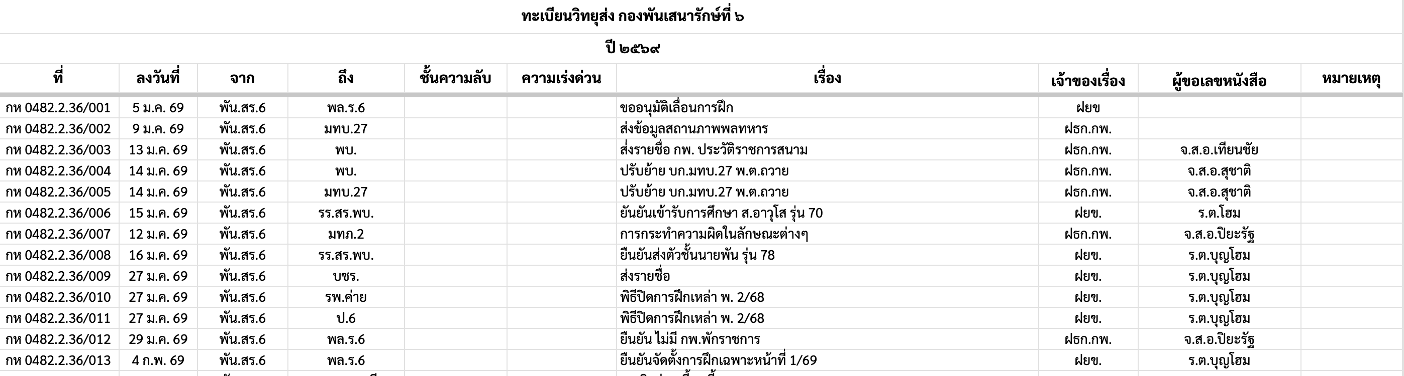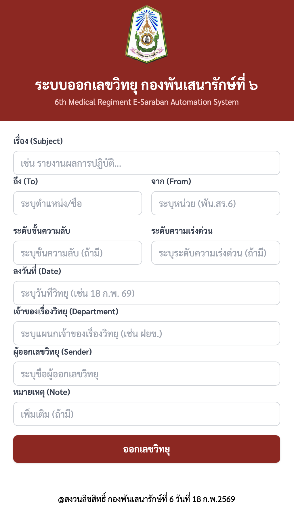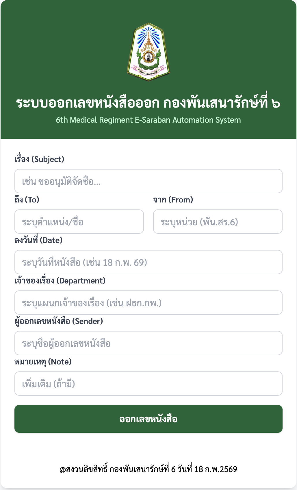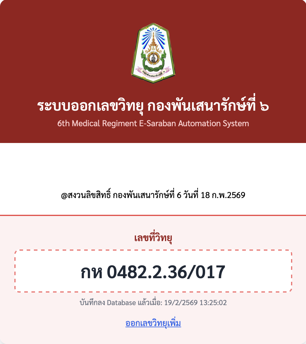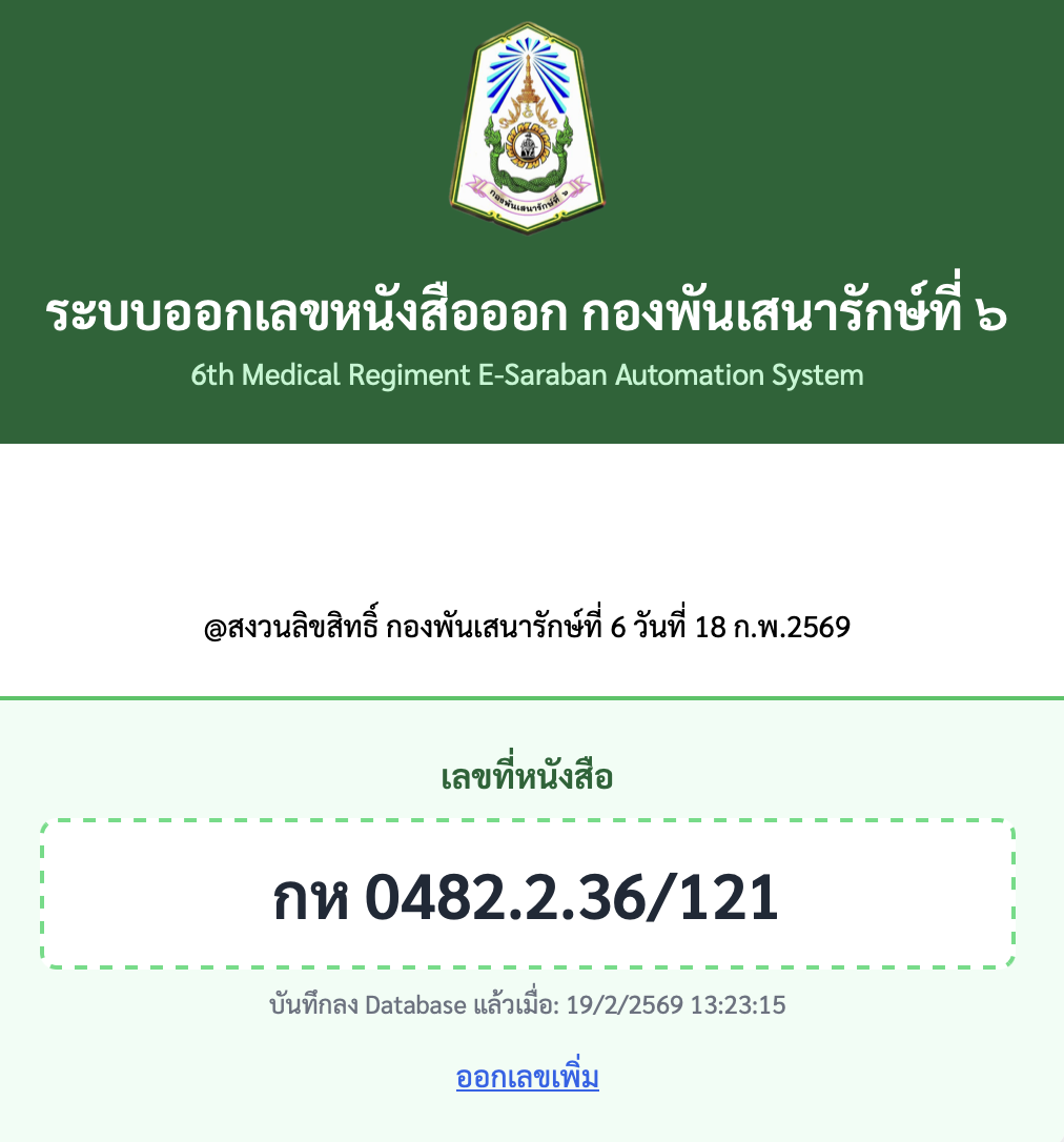 โปรแกรมออกเลขที่หนังสืออัตโนมัติ (6th Medical Regiment E-Saraban Automation System)