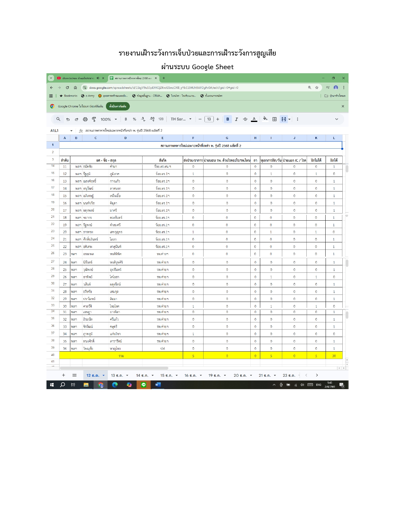 -ผู้รับผิดชอบการฝึกได้ทราบข้อมูลการเฝ้าระวังการเจ็บป่วยของทหารใหม่