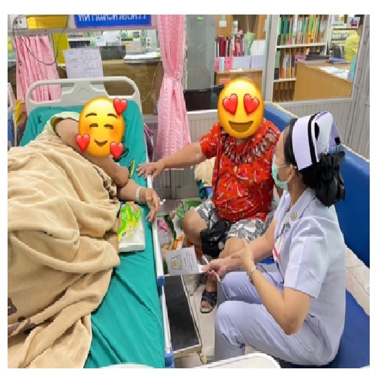 -ให้ความรู้เกี่ยวกับโรคภาวะหัวใจล้มเหลวขณะอยู่โรงพยาบาลและหลังออกจากโรงพยาบาล ตามแผ่นพับการปฏิบัติตัวที่ได้จัดทำขึ้น